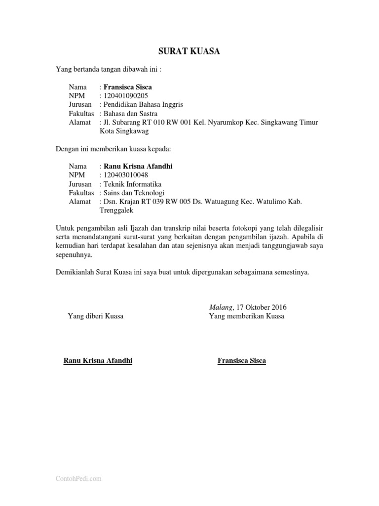 Contoh Surat Kuasa Pengambilan Ijazah Pdf : Doc Surat Kuasa Ambil Ijazah Doc Mati Suri Academia Edu - Yang bertanda tangan di bawah ini :. Pengertian surat kuasa istimewa adalah suatu surat kuasa yang diberikan kepada pihak lain untuk mewakili pemberi kuasa. Contoh surat kuasa pengambilan uang di bank. Terkadang tidak semua keperluan akan suatu hal bisa diambil dengan mudah tanpa pemilik asli. Ijazah, bpkb, shm, gaji, thr, atau yang lainnya. File pdf tentunya tidak akan bisa digunakan dalam mengambil ijazah.